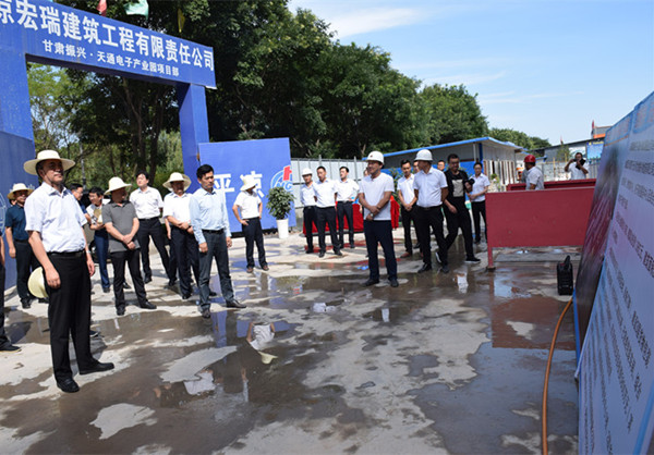 2019年8月7日下午,市委書記郭承錄帶領觀摩督查組蒞臨甘肅振興·天通電子(物流)產業(yè)園現(xiàn)場觀摩督查項目建設,平?jīng)鍪姓衽d集團副董事長鄭龍、總經(jīng)理鄭虎及項目管理人員陪同此次觀摩督查工作。
