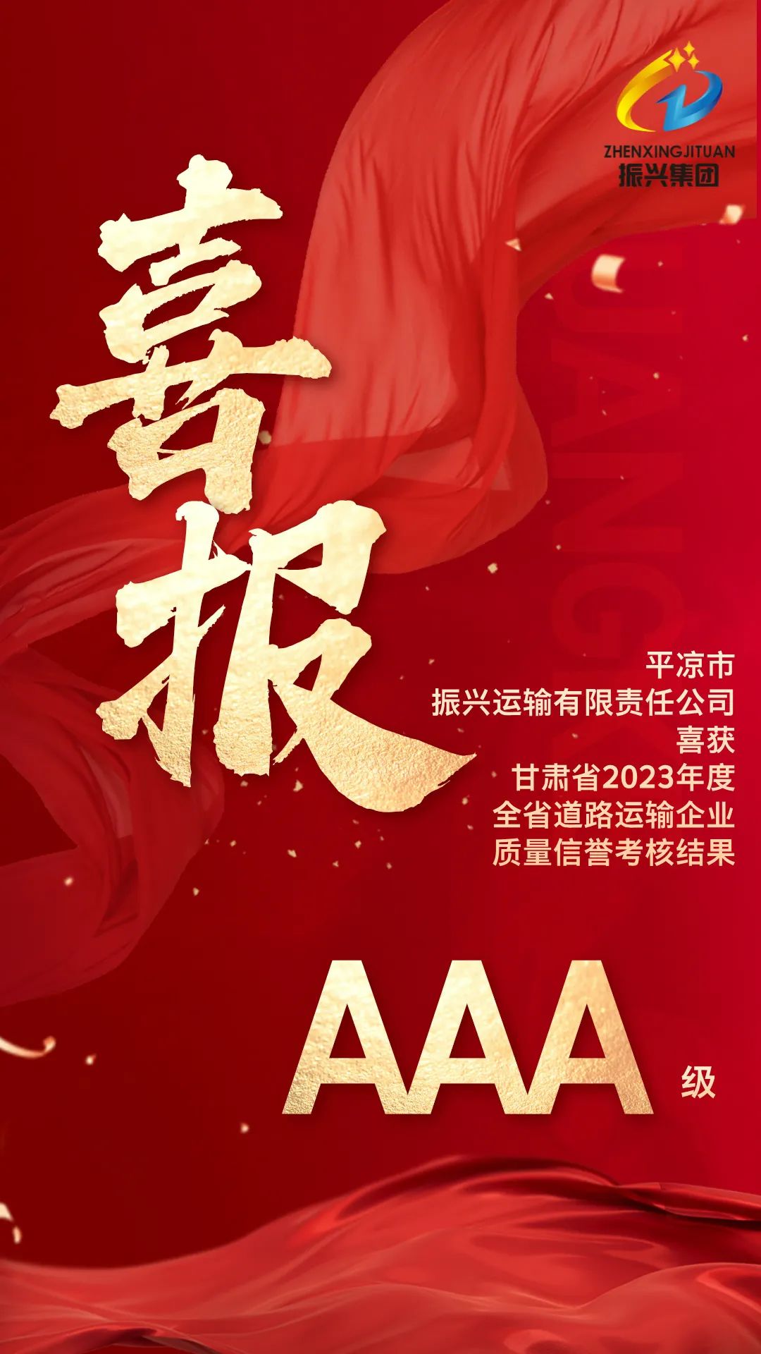 近日,根據(jù)區(qū)交通運(yùn)輸局轉(zhuǎn)發(fā)的甘肅省道路運(yùn)輸事業(yè)發(fā)展中心《關(guān)于公布2023年度道路運(yùn)輸企業(yè)質(zhì)量信譽(yù)考核結(jié)果的通知》(甘運(yùn)培〔2024〕4號(hào))文件精神,振興集團(tuán)下屬巡游出租企業(yè)單位平?jīng)鍪姓衽d小汽車出租有限責(zé)任公司和貨運(yùn)單位平?jīng)鍪姓衽d運(yùn)輸有限責(zé)任公司均在2023年度全省道路運(yùn)輸企業(yè)質(zhì)量信譽(yù)考核工作中被評(píng)為“AAA”級(jí)企業(yè)。這是繼兩家單位參與質(zhì)量信譽(yù)考核工作連續(xù)十多年以來又一次捷報(bào),也是對(duì)兩家單位2023年度在企業(yè)管理、制度建設(shè)、安全生產(chǎn)、服務(wù)質(zhì)量等相關(guān)工作方面的高度認(rèn)可。
