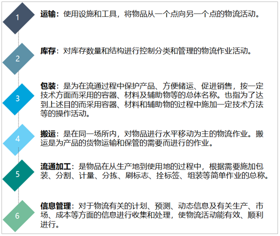 中國(guó)物流行業(yè)起步較晚,隨著國(guó)民經(jīng)濟(jì)的飛速發(fā)展,中國(guó)物流行業(yè)保持較快增長(zhǎng)速度,物流體系不斷完善,行業(yè)運(yùn)行日益成熟和規(guī)范。具體內(nèi)容包括以下幾個(gè)方面:用戶服務(wù)、需求預(yù)測(cè)、訂單處理、配送、存貨控制、運(yùn)輸、倉(cāng)庫(kù)管理、工廠和倉(cāng)庫(kù)的布局與選址、搬運(yùn)裝卸、采購(gòu)、包裝、情報(bào)信息。